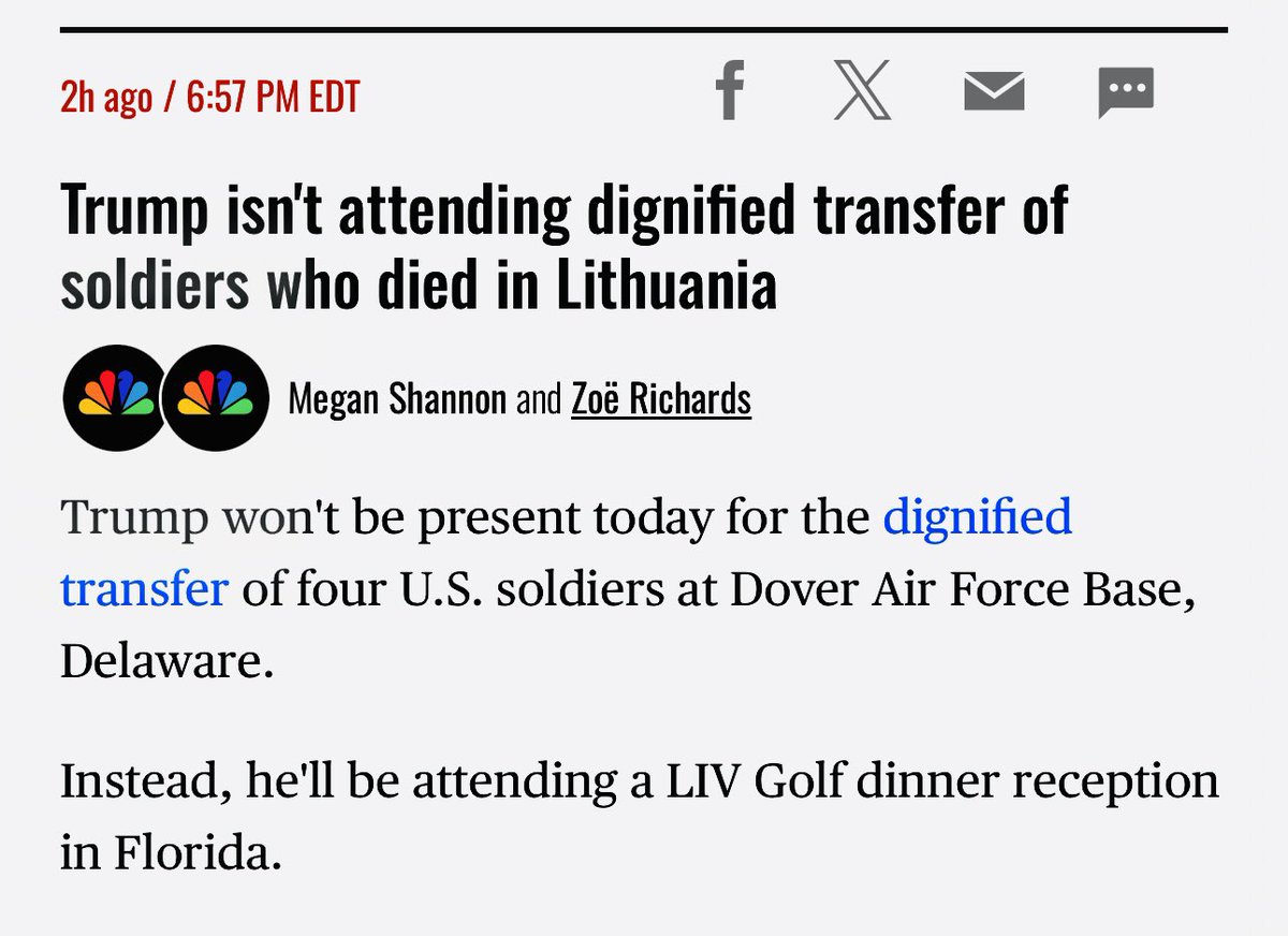 A man’s gotta have a code. Trump’s code is that the Saudis are paying him millions to host the golf tournament, so that’s where he is.