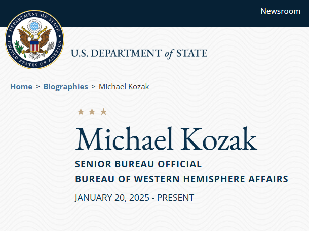 Earlier in his career, Kozak served as senior director for democracy, human rights, and international organizations at the NSC (2005-2009). Kozak also served as principal deputy assistant secretary for Inter-American Affairs (1988-1991), principal deputy legal adviser (1985-1988), and as attorney adviser to the Panama Canal Zone Government (1972-73).