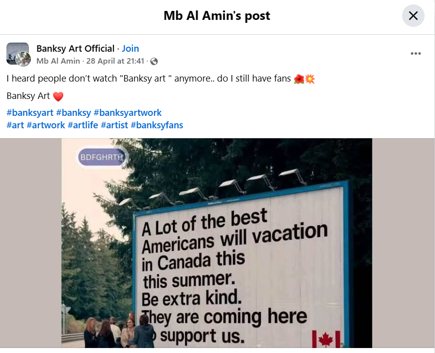(61,493 posts)6. That's AI slop, posted by someone on FB exploiting both Banksy's name and all the stolen art used to