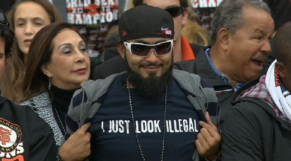 (23,535 posts)Worn by SF Giants pitcher Sergio Romo. At an airport, causing a ruckus and at a World Series parade.