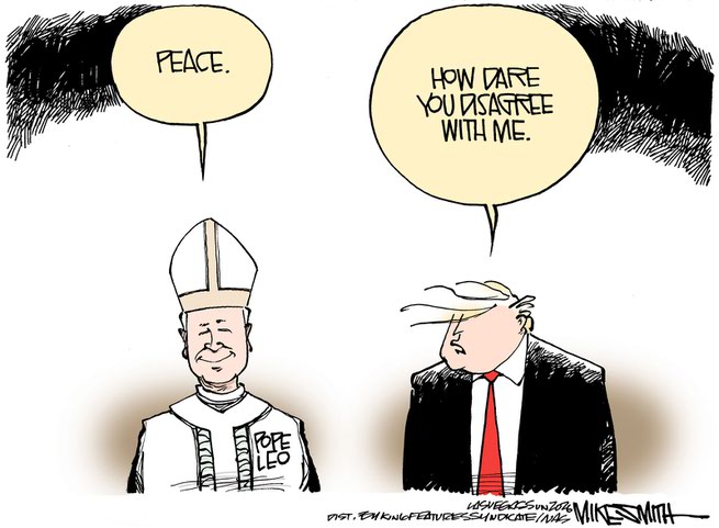 (33,011 posts)The cartoon with the Pope and his cross, and tsf with his "T" symbol reminded me of something. In the novel "Brave New World," the T stood for the Model T car, and the word "Ford" had replaced "Lord." The cartoon just reminded me of that famous dystopia. There is not a direct connection, but we are living in a bit of a dystopia ourselves right now. I hope can be like Hungary and find our way out.