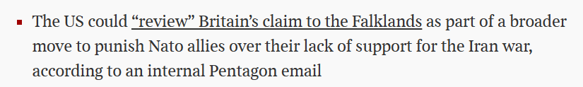 Iran war latest: US could 'review' Falklands claim to punish Britain (Original Post)