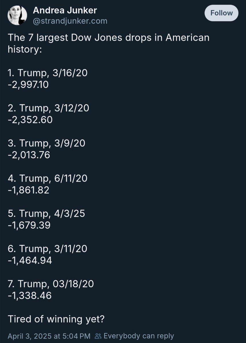 Yep. It just invites someone to say that the three largest Dow gains of all time were under Trump onenote Apr 2025 #27